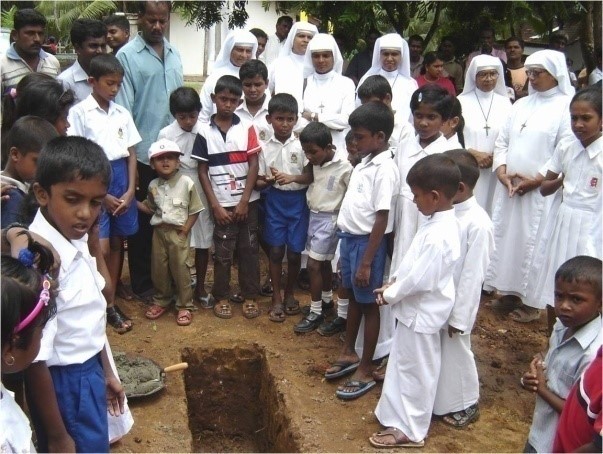 The school started with 125 children on the role and seven teachers on the staff. Most of the children were from St. Joseph’s Girls School destroyed by the Tsunami. Since the children did not have a proper place to continue their studies the parents requested to have a school run by the Church. As a response to that request the parish priest of Payagala and the Dean of Kalutara at that time Rev. Fr. Ivan Pietersz took the initiative with the approval and help of the Archbishop of Colombo, Daimler Chrysler Institute Singapore, and Dimo Company Sri Lanka provided the present Holy Angels’ Girls School. The Sisters of the Holy Angels were invited to be the administrators of the school, Rev Sr. Mary Paul being its first principal. It was a courageous and bold decision taken by our Rev. Mother Raymond Wijayasuriya the Superior General of the congregation with her councilors to accept the school.